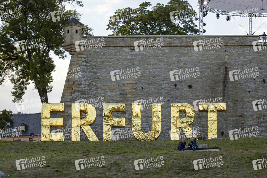 Erfurt Schriftzug auf dem Petersberg bei dem Vorbereitungen zum Tag der Deutschen Einheit unter dem Motto 'Zusammen wachsen'. Erfurt, 30.09.2022