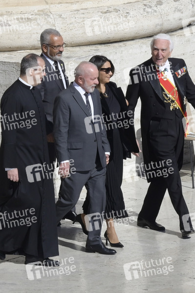 Lula Da Silva mit Ehefrau Rosangela da Silva bei der Trauermesse für den verstorbenen Papst Franziskus auf dem Petersplatz. Vatikanstadt, 26.04.2025