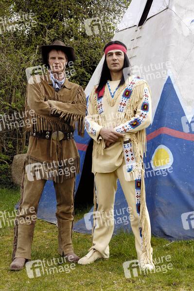 Pressetermin zu 'Winnetou I' der Karl May Freilichtspiele mit Erol Sander als Winnetou und Thorsten Nindel als Old Shatterhand im Indian Village, Bad Segeberg