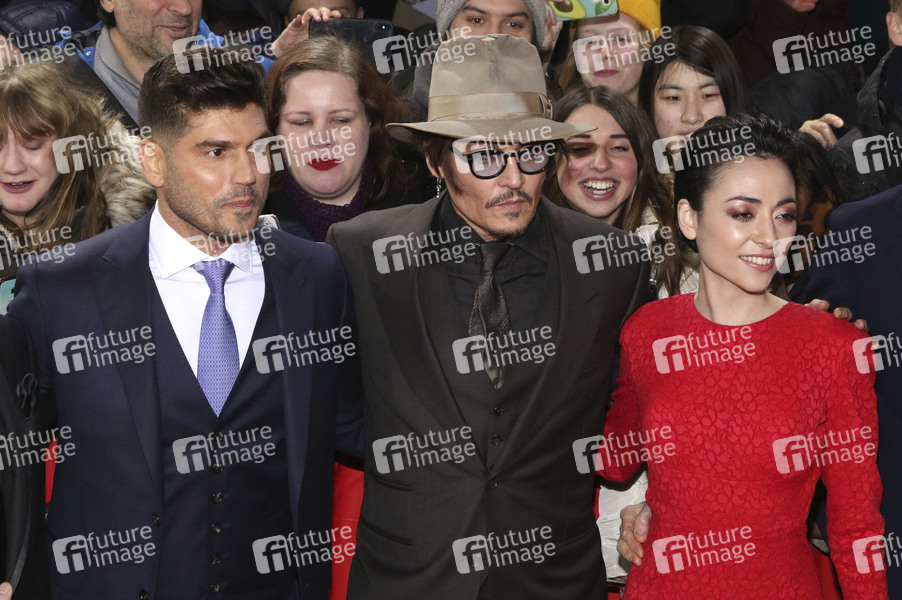 Andrew Levitas, Johnny Depp und Minami bei der Premiere des Kinofilms 'Minamata' auf der Berlinale 2020 / 70. Internationale Filmfestspiele Berlin im Friedrichstadt-Palast. Berlin, 21.02.2020