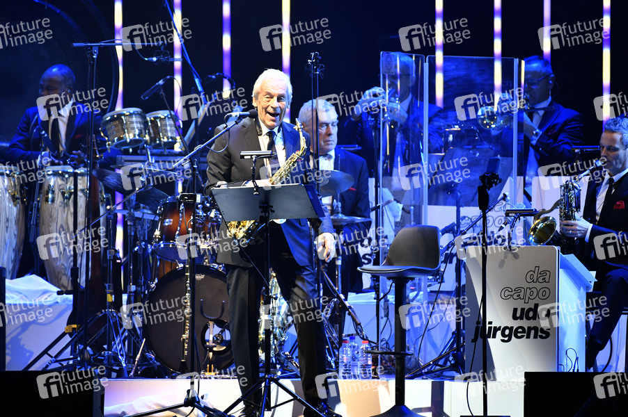 Das Orchester Pepe Lienhard bei der Premiere der Show 'Da Capo Udo Jürgens' in der Uber Arena. Berlin, 02.11.2024