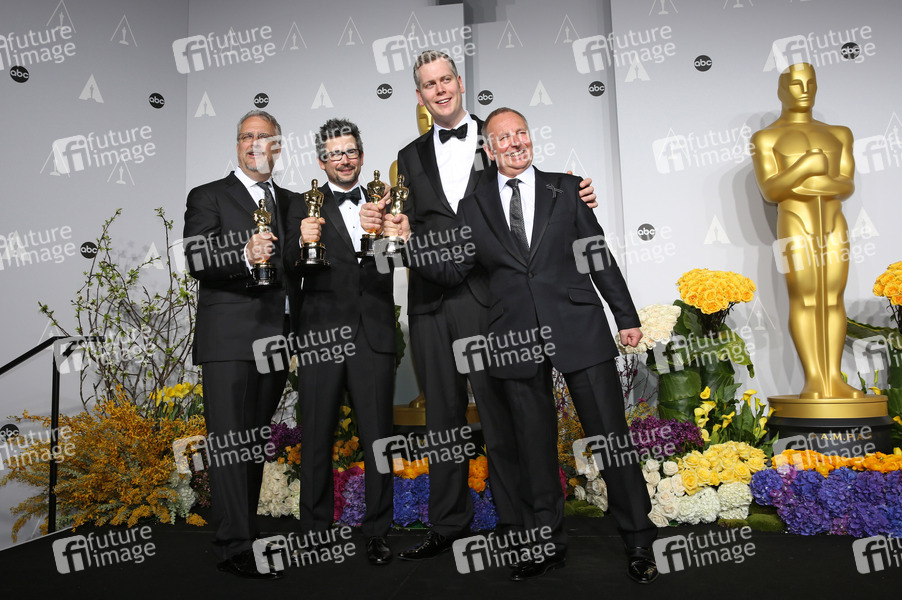 Skip Lievsay, Niv Adiri, Christopher Benstead und Chris Munro mit Oscars für den besten Ton in 'Gravity' bei der Oscar Verleihung 2014 / 86th Academy Awards Preisverleihung im Dolby Theatre, Hollywood. Los Angeles, 02.03.2014