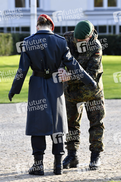 Vorbereitungen für die Ansprache des Bundespräsidenten beim Feierlichen Gelöbnis zum 65. Gründungstag der Bundeswehr vor dem Schloss Bellevue. Berlin, 12.11.2020