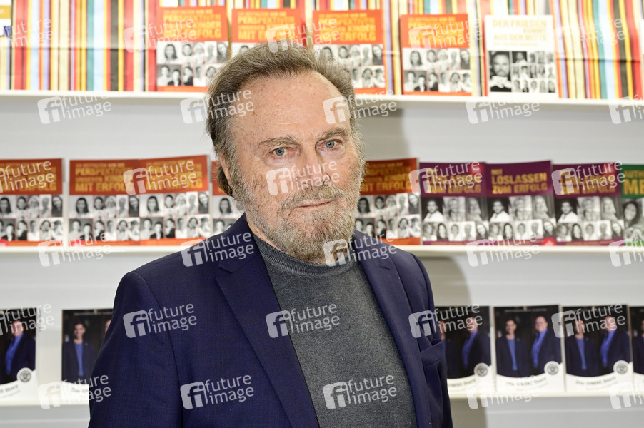 Franco Nero beim Sektempfang zur Lesung 'Der Frieden kommt aus der Mitte' am Messestand des Verlages Basic Erfolgsmanagement in der Halle 2 auf der Leipziger Buchmesse 2025 auf dem Messegelände. Leipzig, 29.03.2025