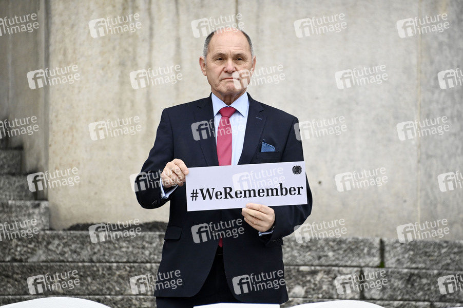 Wolfgang Sobotka bei den Pressestatements von Wolfgang Sobotka, Mickey Levy und Bärbel Bas am Schriftzug #WeRemember zur Erinnerung an die Millionen im Nationalsozialismus ermordeten Juden vor dem Reichstagsgebäude. Berlin, 25.01.2022