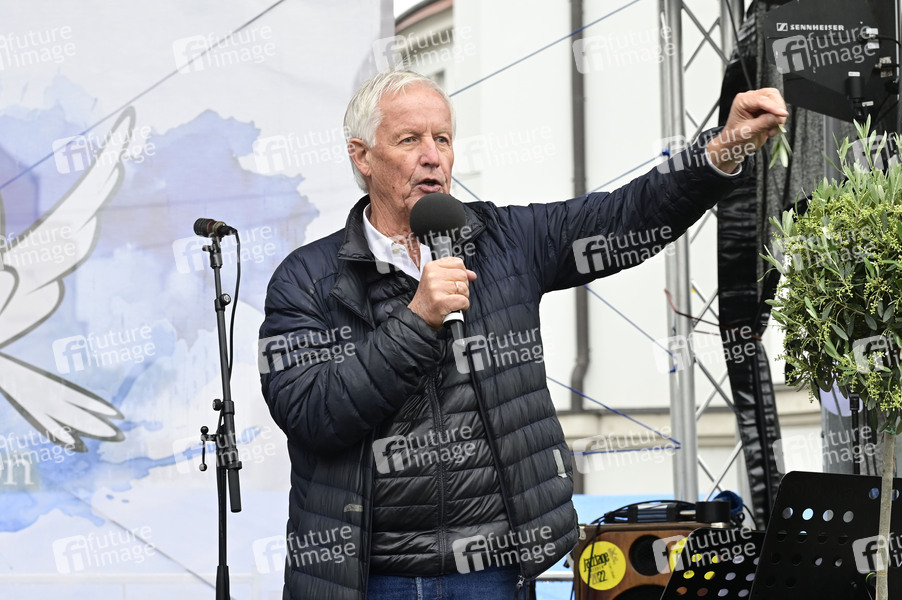 Jürgen Fliege bei einer 'Friedensprozession' am Karfreitag unter dem Motto 'Frieden kennt keine Brandmauern' auf dem Postplatz. Dresden, 18.04.2025