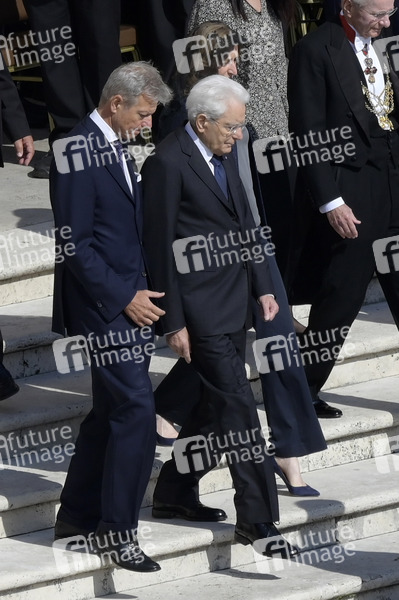 Sergio Mattarella mit Tochter Laura Mattarella bei der Amtseinführung von Papst Leo XIV. auf dem Petersplatz. Vatikanstadt, 18.05.2025