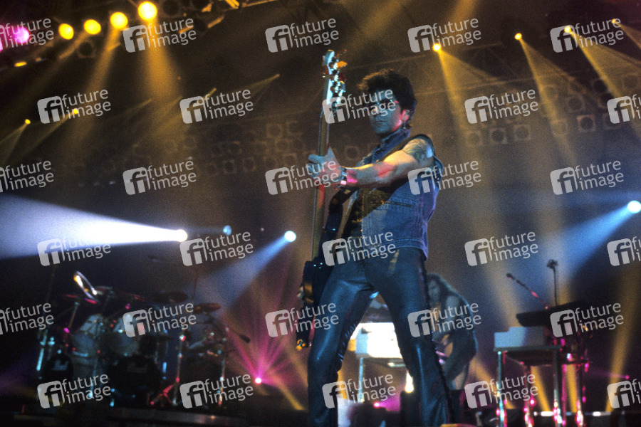Alec John Such von Bon Jovi bei einem Konzert der 'Keep the Faith'-Tour in der Eilenriedehalle. Hannover, 21.04.1993