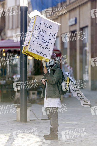 Demonstrant auf der #StayAwake Bamberg Demo für Freiheit und Selbstbestimmung. Bamberg, 06.03.2021