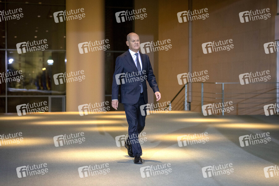 Olaf Scholz bei einem Pressestatement im Bundeskanzleramt, nachdem ein afghanischer Asylbewerber in München in eine Menschenmenge gefahren ist und viele Menschen verletzt hat. Berlin, 13.02.2025