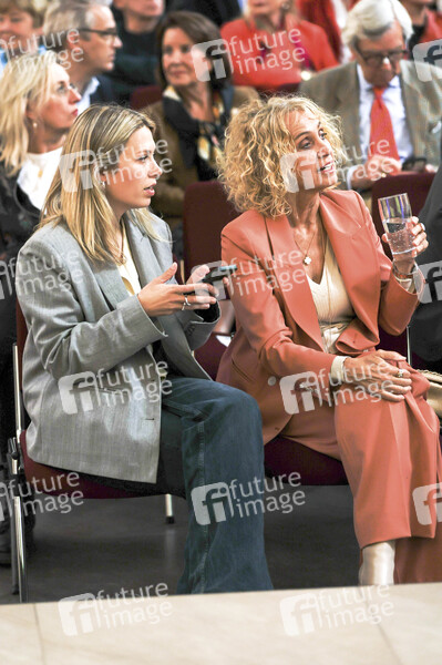 Luisa Nuhr mit Mutter Jutta Nuhr bei der Präsentation der Wanderausstellung 'Woanders ist überall' mit Gemälden über die Geschichte und Kultur des Ruhrgebiets von Dieter Nuhr in der Kreuzkirche. Essen, 28.05.2024