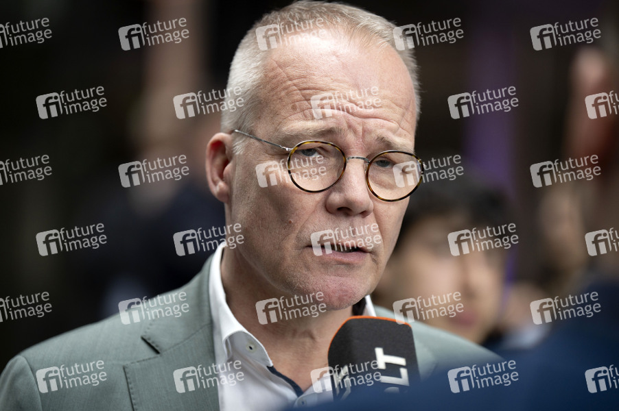 Matthias Miersch bei der Pressekonferenz von CDU, CSU und SPD zur Vorstellung des gemeinsamen Koalitionsvertrages im Paul-Löbe-Haus. Berlin, 09.04.2025