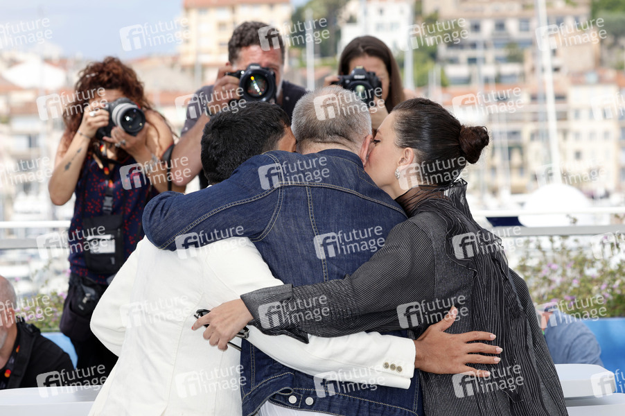 Iago Xavier, Karim Ainouz und Nataly Rocha beim Photocall zum Kinofilm 'Motel Destino' auf dem Festival de Cannes 2024 / 77. Internationale Filmfestspiele von Cannes am Palais des Festivals. Cannes, 23.05.2024