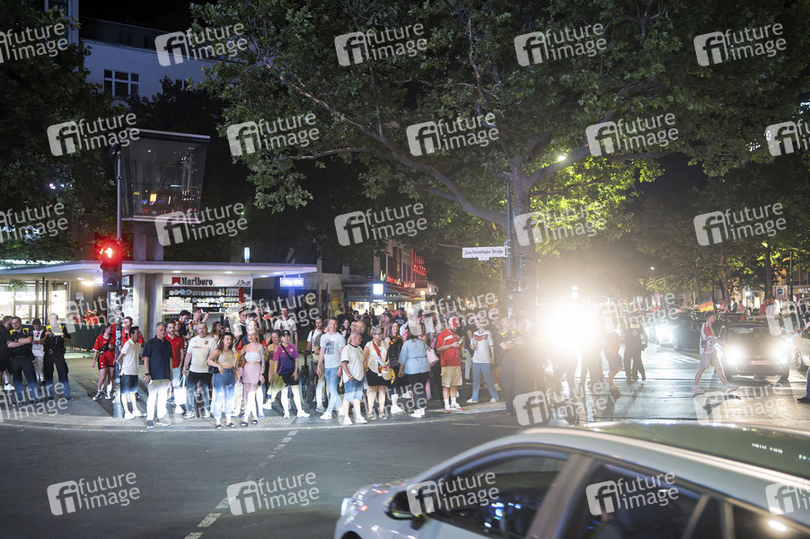 Deutsche Fans feiern den deutschen Sieg im Viertelfinale der Fußball-Europameisterschaft 2024 mit einem Autokorso auf dem Kurfürstendamm. Berlin, 29.06.2024