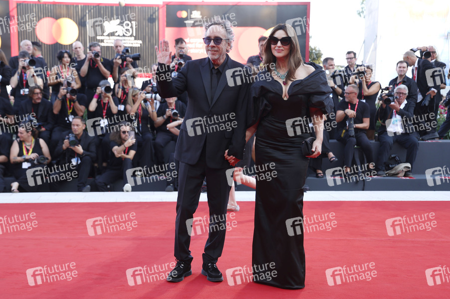 Tim Burton und Monica Bellucci bei der Opening Ceremony mit der Premiere des Kinofilms 'Beetlejuice Beetlejuice' auf der Biennale di Venezia 2024 / 81. Internationale Filmfestspiele von Venedig im Palazzo del Cinema. Venedig, 28.08.2024