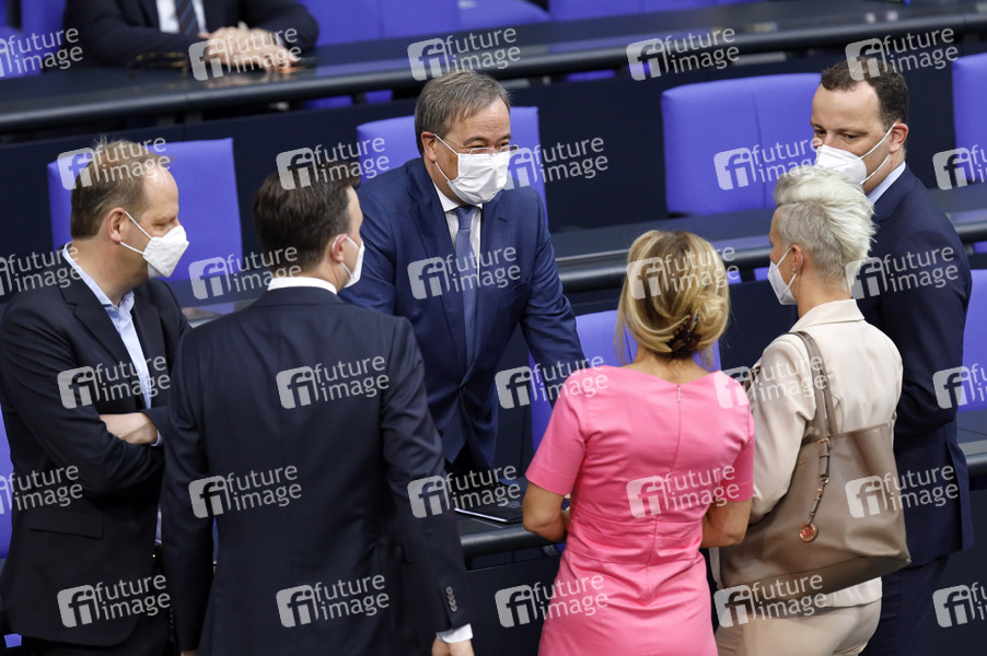 Thomas Heilmann, Paul Ziemiak, Armin Laschet, Michaela Noll, Silvia Breher und Jens Spahn in der 236. Sitzung des Deutschen Bundestages im Reichstagsgebäude. Berlin, 24.06.2021