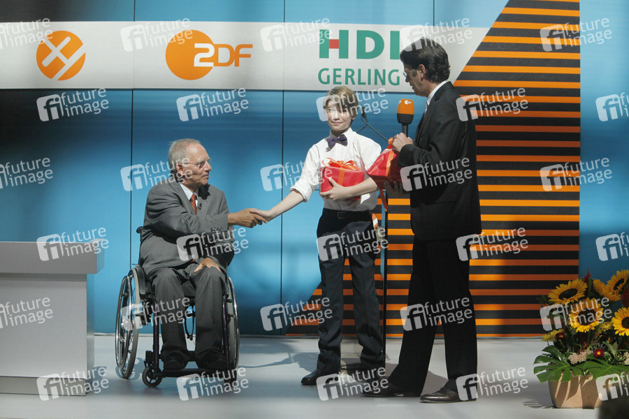 Wolfgang Schäuble mit Preisträger Kaspar Krebbers und Rudi Cerne