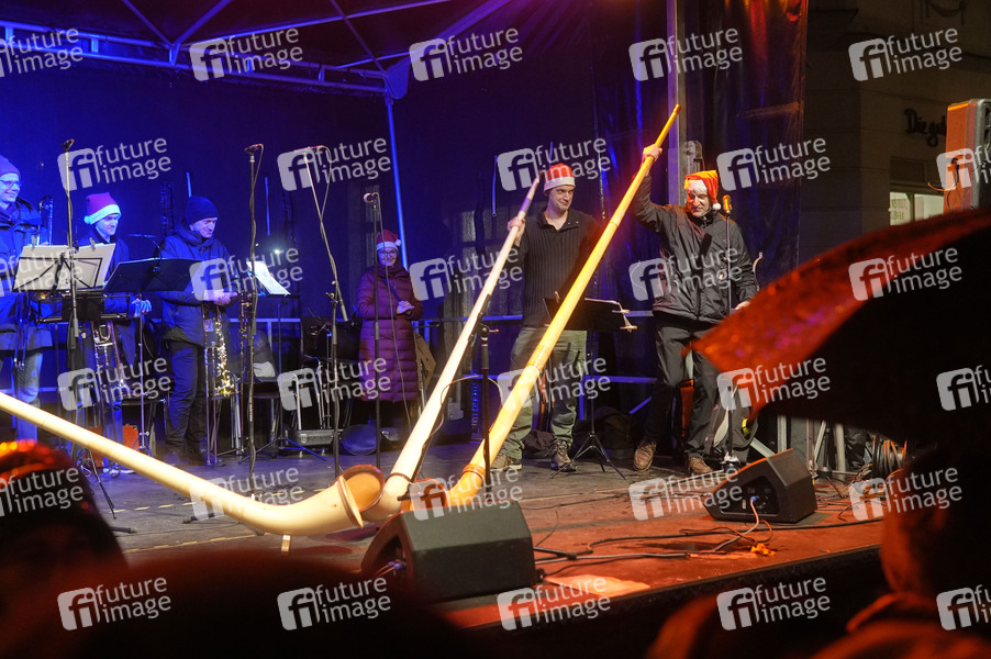 Musikdarbietung auf dem Alt-Rixdorfer Weihnachtsmarkt rund um den Neuköllner Richardplatz. Berlin, 08.12.2024