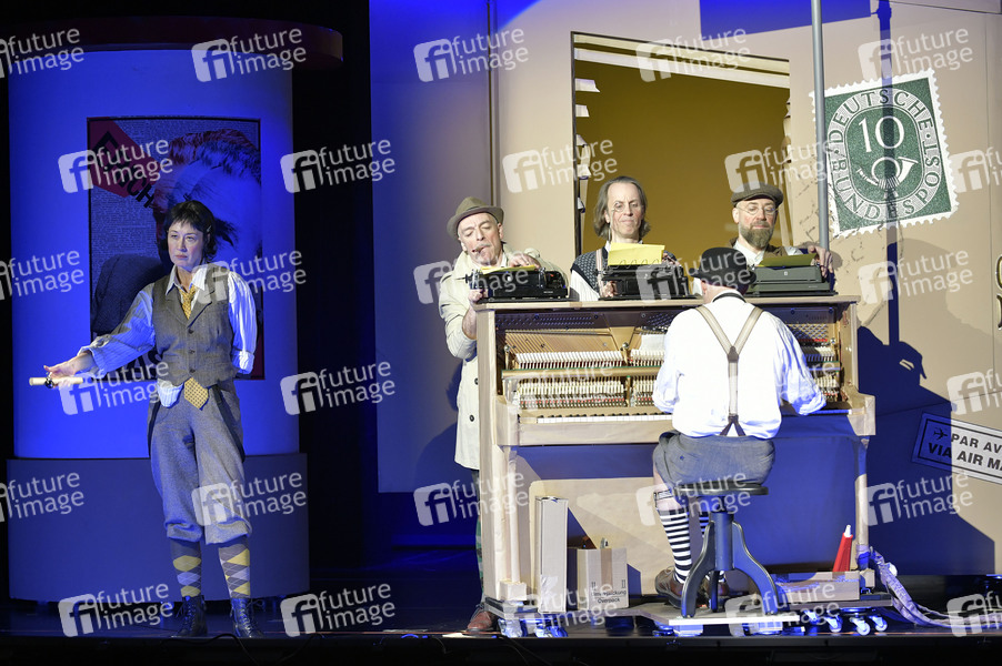 Krista Birkner, Mario Ramos, Oliver Seidel, Henrik Kairies und Bürger Lars Dietrich bei der Fotoprobe zum Theaterstück 'Erich und die Detektive' im Schlosspark Theater. Berlin, 21.01.2026