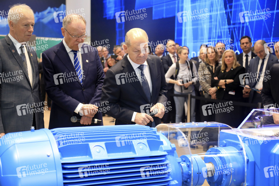 Deutsche Messe AG, Hannover Messe Industrie, Weltleitmesse der Industrie, Industriemesse, Industrieschau, Automatisierung, IT-Sicherheit, KI, Technologie, Wirtschaft, Ausstellung, Fair, Messe, Eröffnung, Opening, Leitmesse, Synergie und Kooperation, Wasserstoff & Brennstoffzellen, CO2-neutrale Produktion, Energizing a Sustainable Industry, Künstliche Intelligenz, Partnerland Kanada, Politiker, Bundeskanzler, Ministerpräsident von Niedersachsen