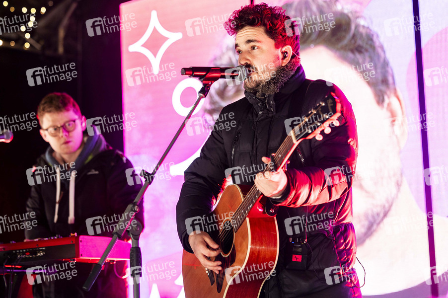 Philipp Dittberner live bei einem Konzert der MDR Jump Weihnachtsmarkttour 2024 auf der Bühne am Domberg. Erfurt, 29.11.2024