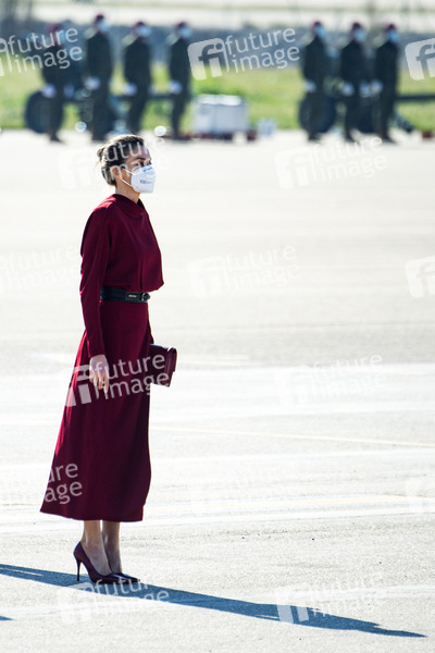 Königin Letizia von Spanien beim Abflug der Royals zum Staatsbesuch zum Fürstentum Andorra am Staatsterminal T4 vom Flughafen Madrid-Barajas. Madrid, 25.03.2021