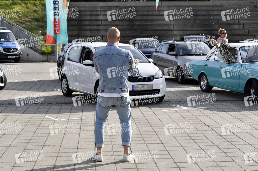 Sänger, Oli P., Schauspieler, Moderator, Oliver Petszokat, Musik, Konzert, Auftritt, Bühne, Stage, live, Unterhaltung, Entertainment, Kultur, Corona, Sars-CoV-2, Covid-19, Coronavirus, Coronakrise, Corona-Krise, Corona-Pandemie, Coronamaßnahmen, Corona-Schutz, Kontaktverbot, Mindestabstand, Social Distancing, Abstand, Abstandhalten, Abstandsregel, Auto, Autokonzertreihe, Autokonzert, Auto-Konzert