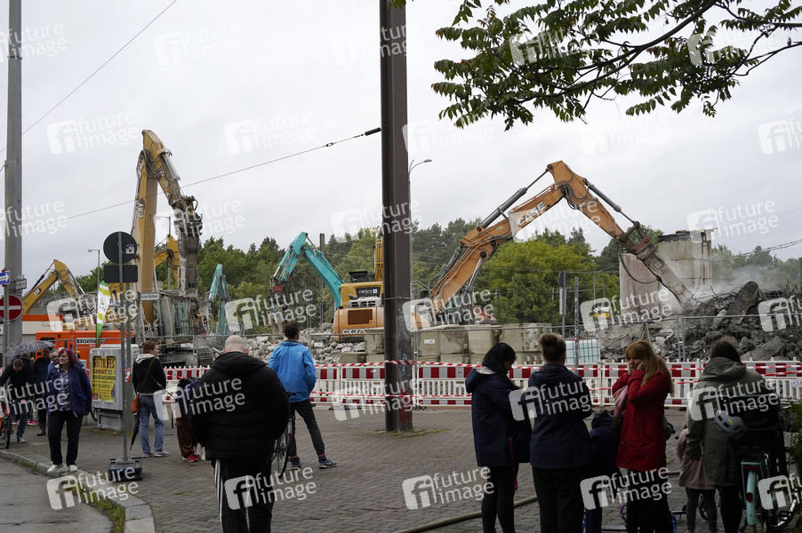 Unermüdlich arbeiten die Abrissbagger an der maroden Brücke an der Wuhlheide (Oberschöneweide). Am 3. Tag ist fast nichts mehr von der Brücke azu sehen. Die kaputte Brücke soll schnellstmöglich entfernt werden mit dem Ziel, die Freigabe der blockieren Straßenbahntrasse und Wiederherstellung des Fuß- und Radverkehrs zwischen Treskowallee und Edisonstraße möglichst bis zum 30. Mai.. Berlin, 25.05.2025