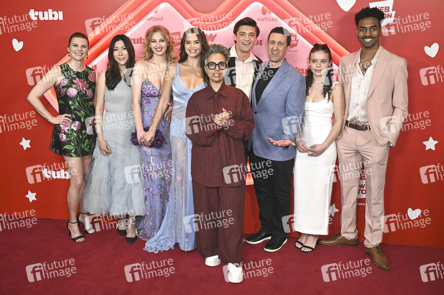 Jennifer Robertson, Hayley Festeryga, Paris Berelc, Fawzia Mirza, Asher Angel, Adam Lewinson, Rosalie Turmel und Roshahn Dhore bei der Premiere des Tubi-Films 'Kissing is the Easy Part' im London Hotel. Los Angeles, 05.02.2026