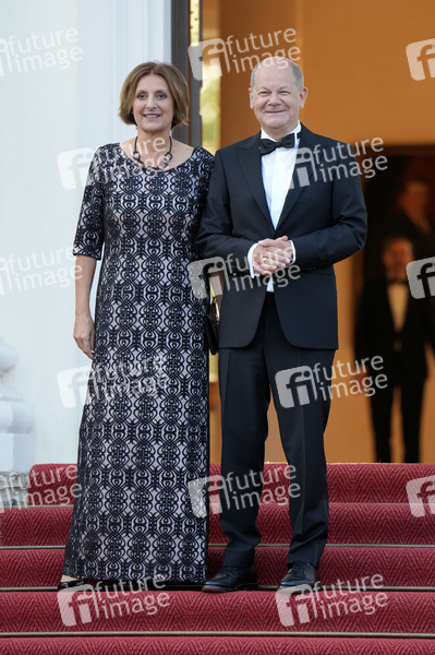 Olaf Scholz mit Ehefrau Britta Ernst bei der Ankunft zum Staatsbankett zu Ehren des Staatspräsidenten der Französischen Republik im Schloss Bellevue. Berlin, 26.05.2024