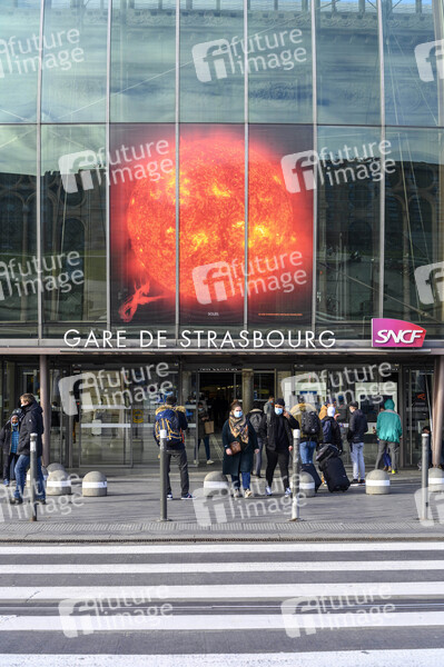 Gare de Strasbourg-Ville, Bahnhof, Hauptbahnhof, Glasbauwerk, Architektur, Glas, SNCF, Central Station, Reisen, Sightseeing, Bahnreisen, Bahnreisende, Fernverkehr, Infrastruktur, Nahverkehr, Reiseverkehr, Reisen, Reise per Zug, Schiene, Zug, Verkehr, Verkehrsanbindung, Verkehrsmittel, Verkehrswege, Züge, Zugfahrplan, Zugreisen, Zugreisende, Zugverbindung, Symbolbild, Symbolfoto