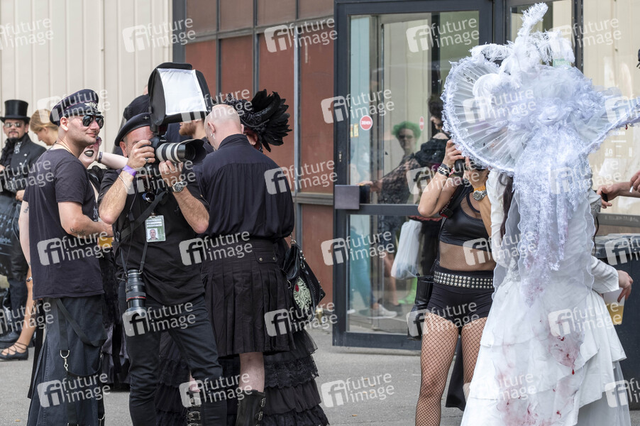 Festivalbesucher beim 28. Wave-Gotik-Treffen auf dem Agra-Gelände. Leipzig, 09.06.2019