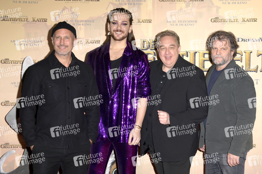 Benno Fürmann, Riccardo Simonetti, Oliver Kalkofe und Gast bei der Premiere des Kinofilms 'Der gestiefelte Kater: Der letzte Wunsch / Puss in Boots: The Last Wish' im Kino in der KulturBrauerei. Berlin, 11.12.2022
