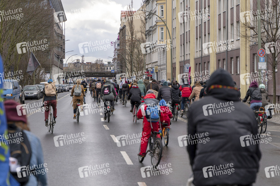 Am Freitag finden mehrere Demonstrationen zum globalen Klimastreik von Fridays for Future in Berlin statt. Auf dem Alexanderplatz startet eine antikapitalistische Fahrraddemo zum Potsdamer Platz. Berlin, 19.03.2021