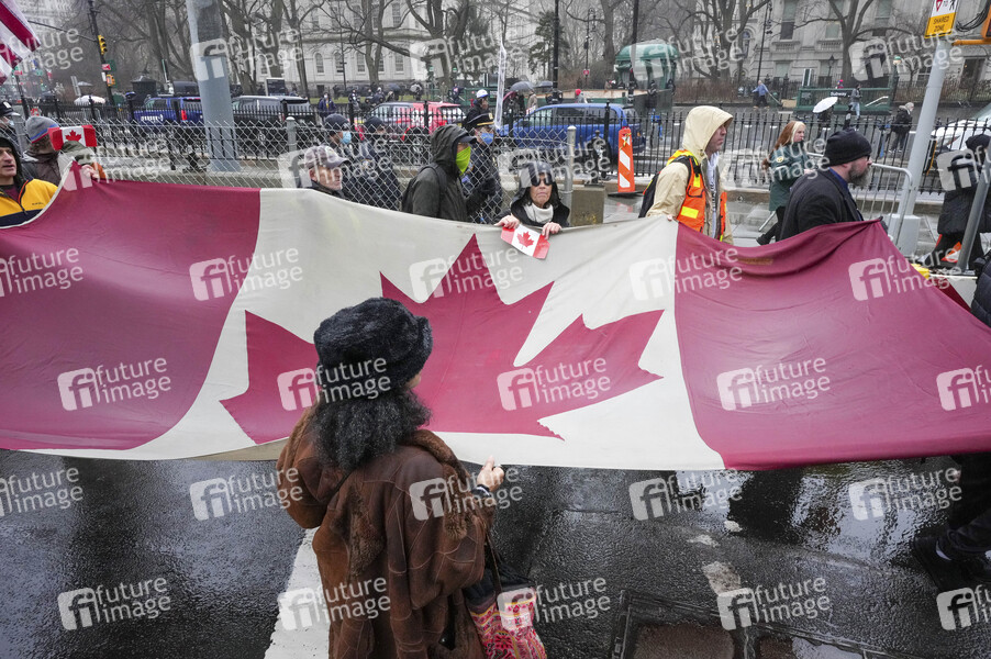 Über 300 Stadtarbeiter und andere protestieren mit einem Marsch über die Brooklyn Bridge, gegen die Ankündigung der Stadt, dass kommunale Angestellte ohne Covid-19-Impfung bis zum Ende der Woche entlassen würden. New York, 07.02.2022