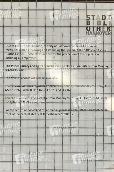 Schließung der Stadtbücherei und der Stadtteilbibliotheken in Bothfeld wegen des Coronavirus. Hannover,15.03.2020