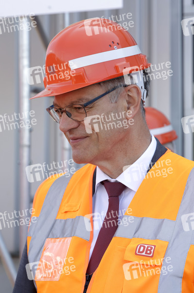 Patrick Schnieder bei der Vorstellung der ersten Güterzuglokomotive, die für den automatisierten Streckenbetrieb umgerüstet wurde im DB Cargo-Werk Köln-Gremberg. Köln, 04.07.2025