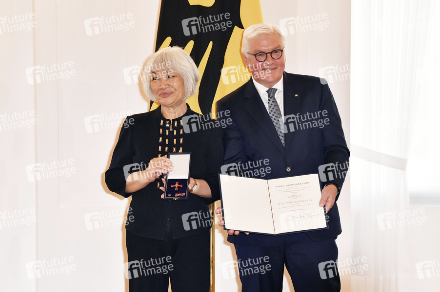 Tomoko Masur und Frank-Walter Steinmeier bei der Verleihung des Bundesverdienstkreuzes im Schloss Bellevue. Berlin, 02.10.2019