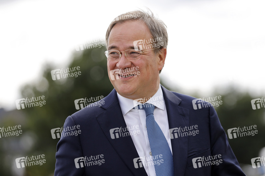 Armin Laschet bei der Inbetriebnahme das Pumpwerks Oberhausen und damit des gesamten Abwasserkanals Emscher. Bis Ende 2021 wird die Emscher sukzessive von ihrer Schmutzfracht befreit. Oberhausen, 20.08.2021
