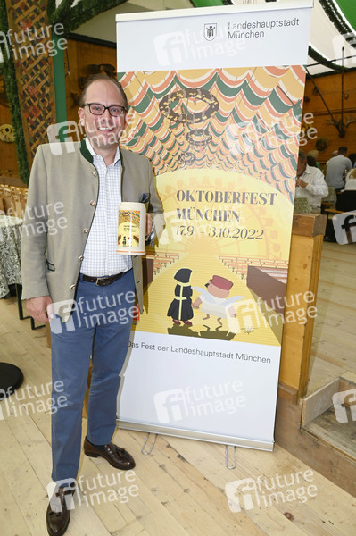 Manuel Pretzl bei der Präsentation des offiziellen Oktoberfest-Maßkrug 2022 im Armbrustschützen-Festzelt auf der Theresienwiese. München, 25. August 2022