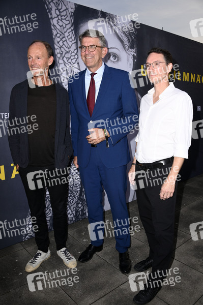 Thomas Rabe, Wolfram Weimer und Sascha Schwingel beim Eröffnungsempfang der UFA Filmnächte 2025 auf der Dachterrasse der Bertelsmann Repräsentanz. Berlin, 27.08.2025