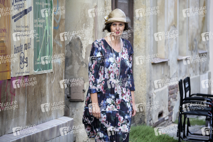 Catalina Navarro Kirner bei Dreharbeiten zum Kinofilm 'Fabian - Der Gang vor die Hunde' am Set in der Salomon-Straße. Görlitz, 08.08.2019