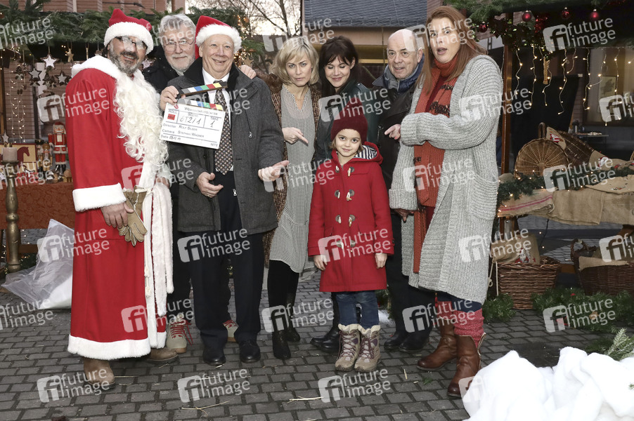 Antonio Putignano, Rolf Silber, Peter Lerchbaumer, Gesine Cukrowski, Felicitas Woll, Yuna, Norbert Walter und Elena Uhlig beim Fototermin zum Drehstart vom ZDF-Film 'Weihnachtstöchter' (AT) im Saalhof. Frankfurt, 19.12.2019
