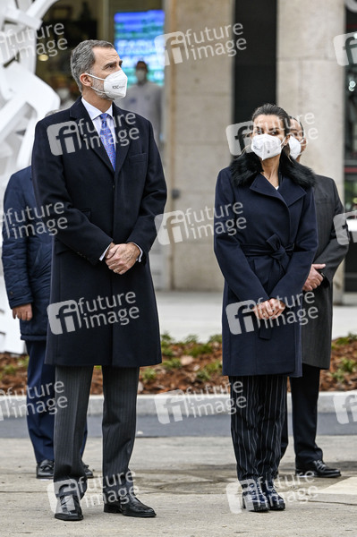 König Felipe von Spanien und Königin Letizia von Spanien bei der Einweihung eines Denkmals des Bildhauers Jaume Plensa auf der Plaza de Los Sagrados Corazone zum Gedenken an das Gesundheitspersonal, das bei der Ausübung ihres Berufs währende der Corona-Pandemie ums Leben kam. Madrid, 18.12.2020