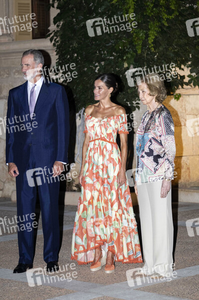 König Felipe VI. von Spanien, Königin Letizia von Spanien und die ehemalige Königin von Spanien Sofia empfangen Repräsentanten der balearischen Behörden und Gesellschaft im Palacio de Marivent. Palma de Mallorca, 04.08.2022