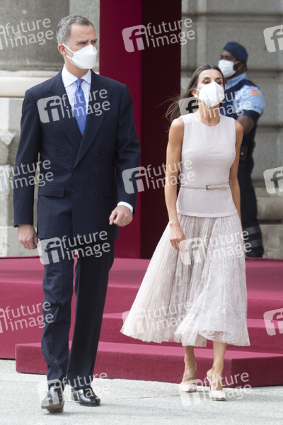 König Felipe VI. von Spanien und Königin Letizia von Spanien beim Empfang des südkoreanischen Präsidenten mit militärischen Ehren im Palacio Real. Madrid, 15.06.2021