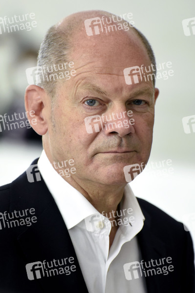 Olaf Scholz bei einem Statement nach einem Unternehmensbesuch bei der Merk KGaA im Innovation Center. Darmstadt, 26.08.2021