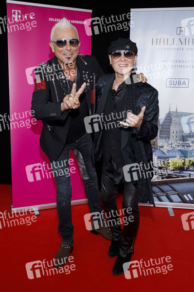 Rudolf Schenker und Klaus Meine von den Scorpions bei der Europäischen Kulturpreisgala 2021 im Opernhaus. Bonn, 28.08.2021