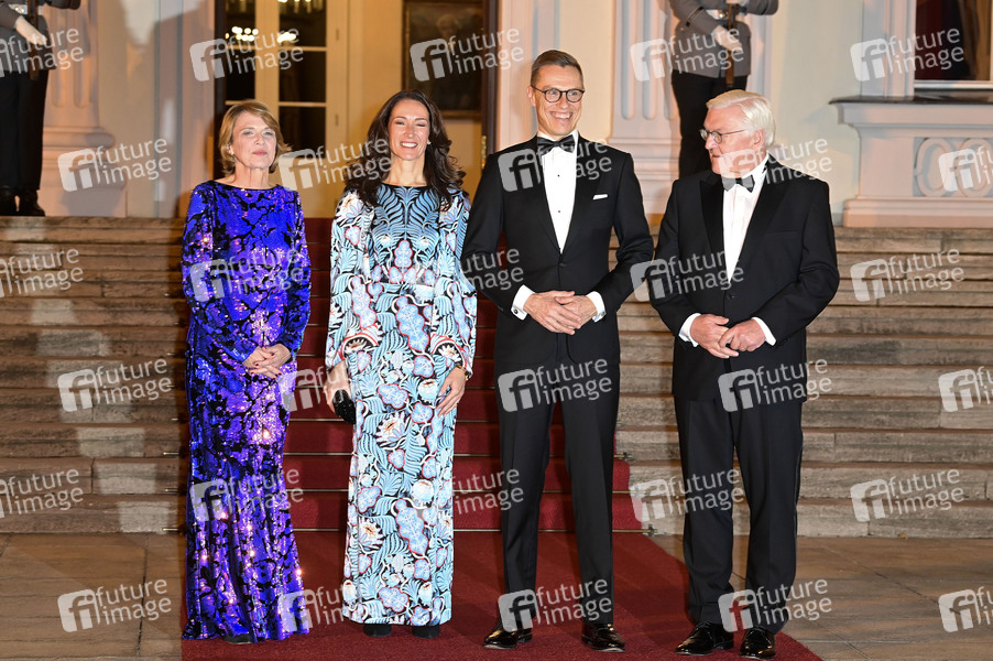 Elke Büdenbender, Suzanne Elizabeth Innes-Stubb, Alexander Stubb und Frank-Walter Steinmeier bei der Ankunft zum Abendessen anlässlich des 25. Jubiläums der Nordischen Botschaften im Schloss Bellevue. Berlin, 21.10.2024