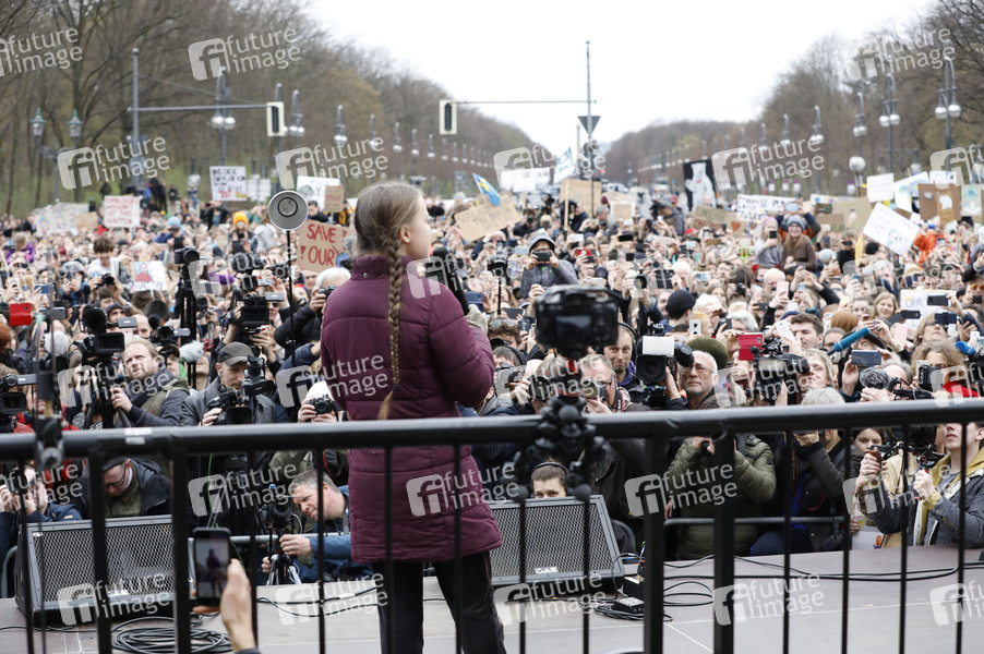 Greta Thunberg bei der 'Fridays for Future' Schülerdemonstration gegen die Klimapolitik vor dem Brandenburger Tor. Berlin, 29.03.2019